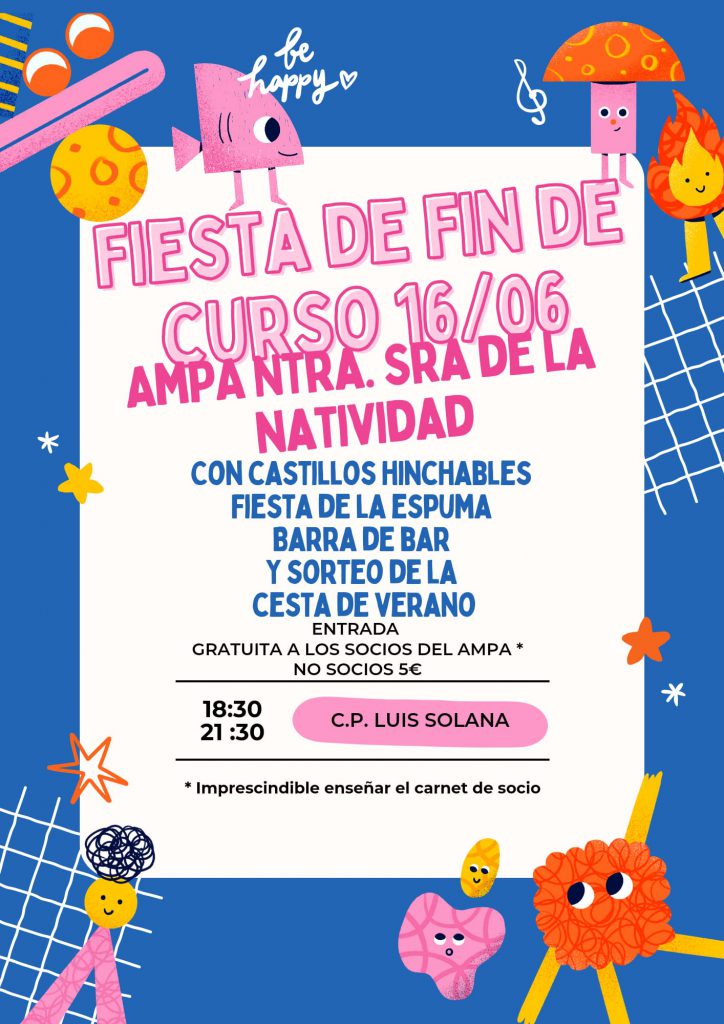 El viernes, 16 de junio tendrá lugar la Fiesta de Fin de Curso de la AMPA.