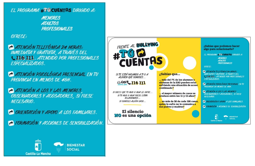 El programa #TÚ CUENTAS está destinado a niñas, niños y adolescentes que puedan sufrir acoso o ciberacoso. Su objetivo principal es plantear un canal de recepción y atención de los casos, favoreciendo: