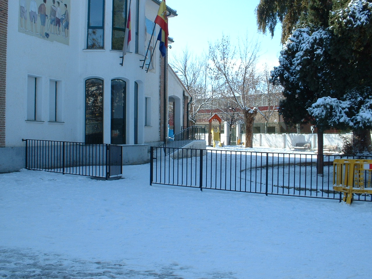 Hoy, lunes, 11 de enero de 2010, ha sido un día muy raro en el cole. El colegio, como todos los días, se abrió a las nueve, sonaron los timbres… ¡pero los niños no entraron! ¿Qué había pasado? Que -¡cosas de la nieve!- los papás no los habían traído a clase…