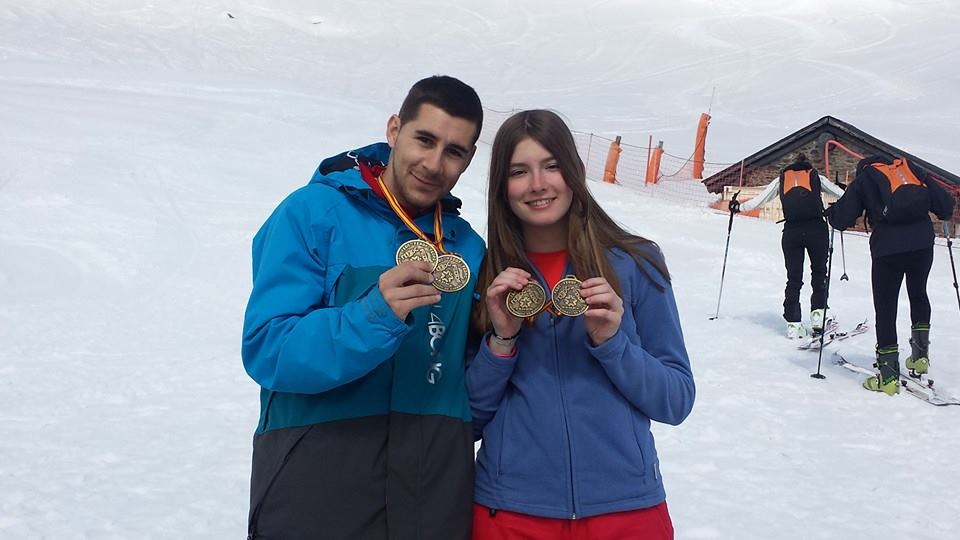 «La foto es del Campeonato de España de esquí para personas ciegas. Estas personas para poder esquiar necesitan un guía, y ese es mi papel. Llevo 5 años como guía de esquí para ciegos pero éste es era el primer año que competía. He competido junto a mi corredora, Inés. Tiene 14 años, es de Madrid y va al Instituto. Éste era su primer año también de competición. Respecto al Campeonato de España, pues nada, solo decir que hemos ganado dos medallas de oro, en slalom y en gigante (solo había esas dos pruebas, si llega a haber más…). El Campeonato se disputó el día 31 de Marzo y 1 de Abril en Pas de la Casa, Andorra. » (Sergio)