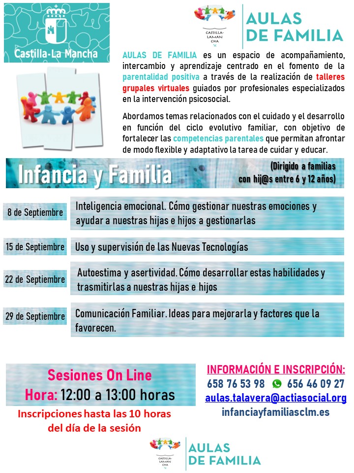 L@s interesad@s en inscribirse podrán hacerlo a través de la siguiente página web: http://infanciayfamiliasclm.es/lista-aulas-de-familia-talavera