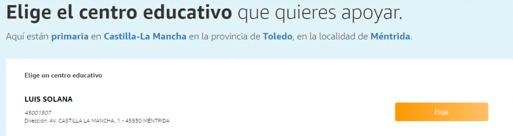 Cualquiera de vosotros puede elegir a nuestro centro para apoyarlo y Amazon, cada vez que compréis en su web, nos añadirá un 2,5% del total de vuestra compra, en forma de crédito virtual, para gastarlo en productos para el cole, cuando acabe la campaña.