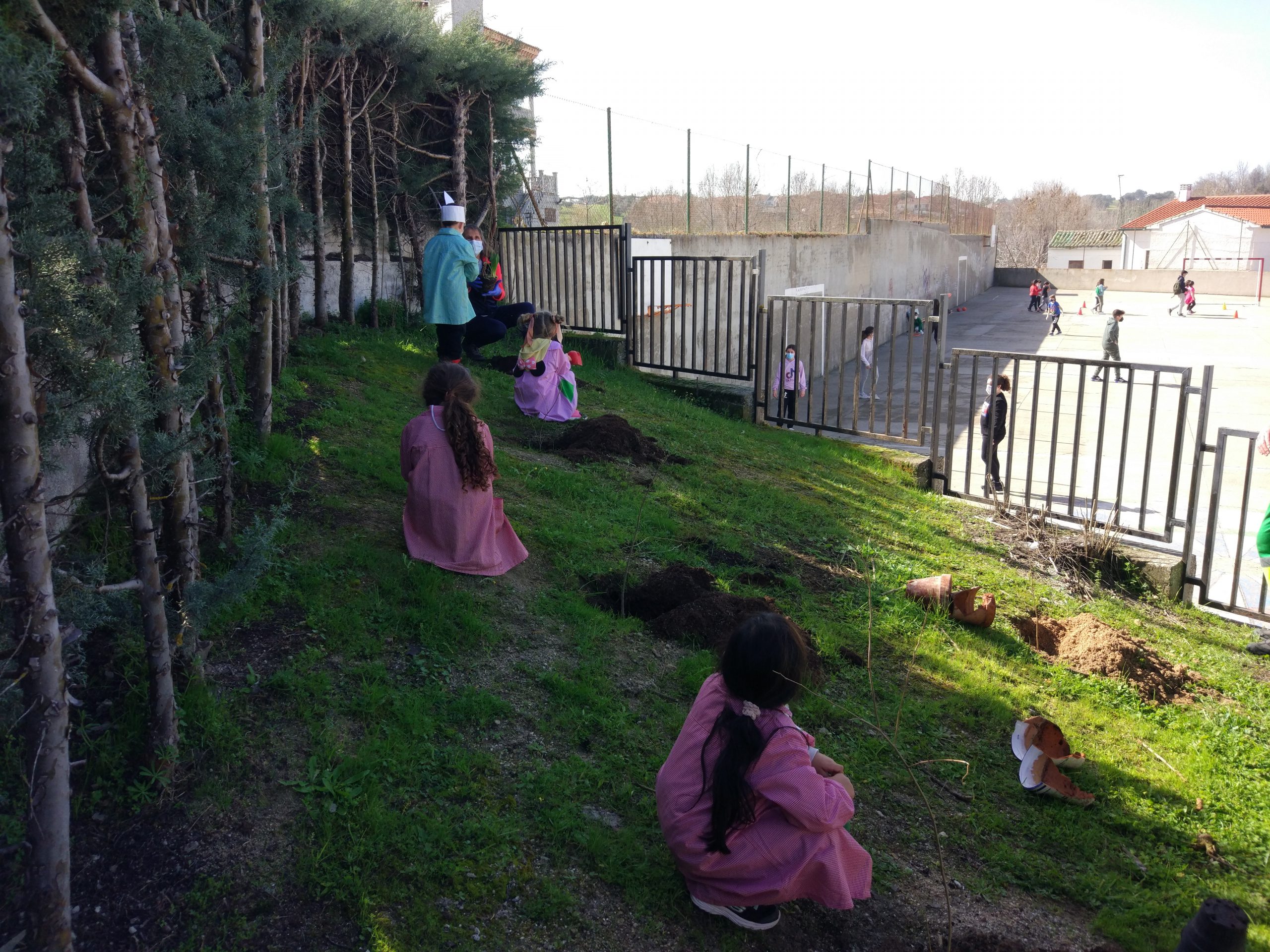 Después han estado plantando cada alumno un arbusto en diferentes espacios del colegio. Con esta actividad retomamos el proyecto » El rincón verde».