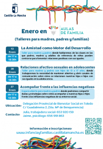Próximas sesiones grupales para padres y madres que se desarrollarán en el próximo mes de enero de 2026 en el área de prevención primaria con nuevas sesiones en el área temática de DESARROLLO PERSONAL Y SOCIAL.